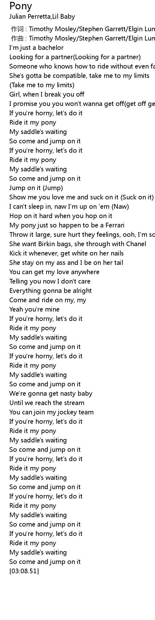 | [01:14.02] | My pony just so happen to be a Ferrari |