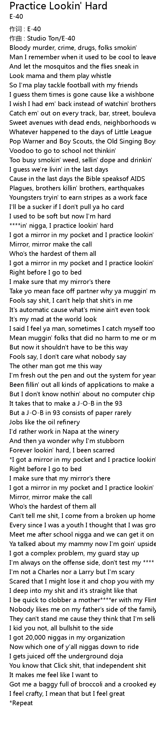 | *I got a mirror in my pocket and I practice lookin' hard | |