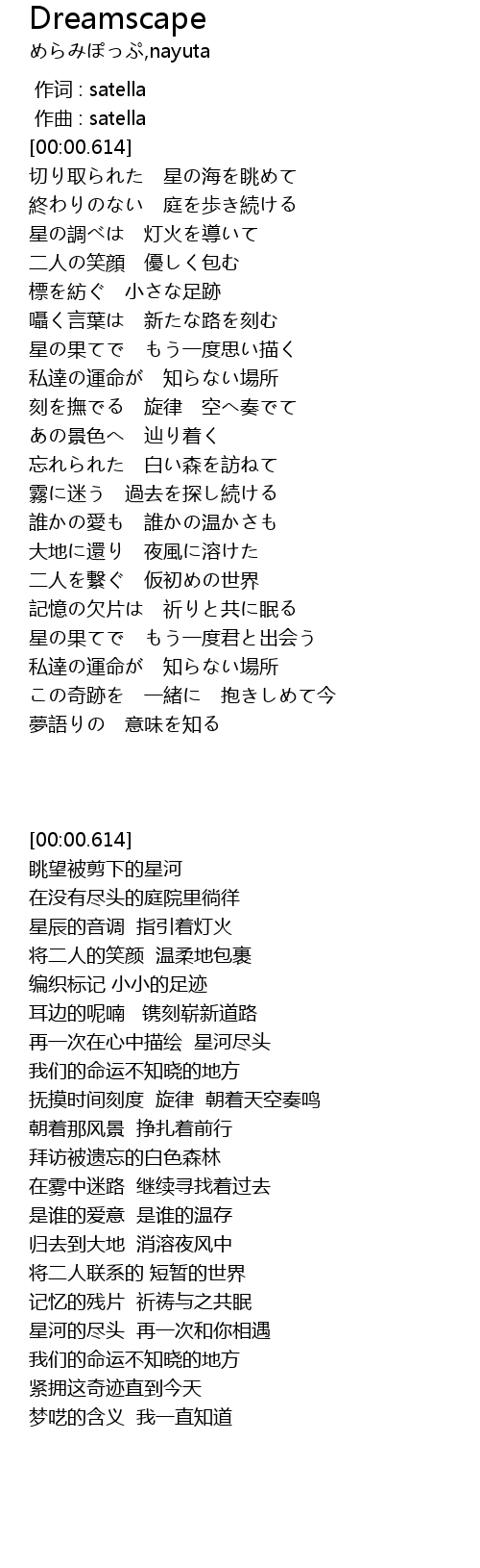 | [00:00.000] | 作词 : satella |