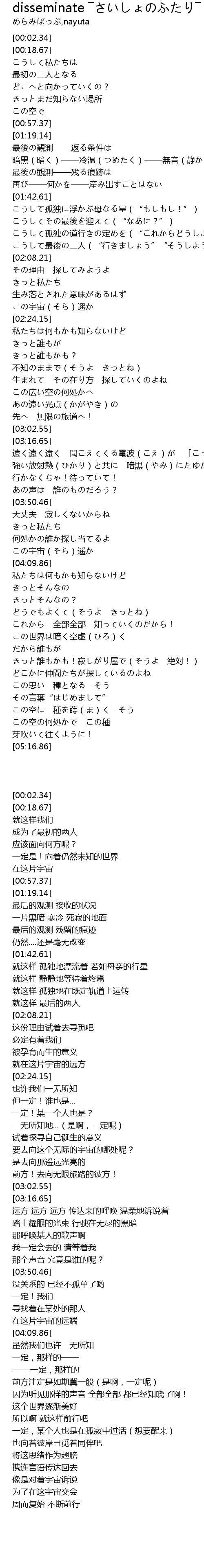 | [01:45.75] | こうして孤独に浮かぶ母なる星(“もしもし!”) |