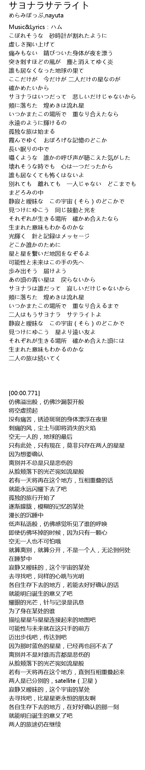 | [00:00.771] | Music&Lyrics:ハム |
