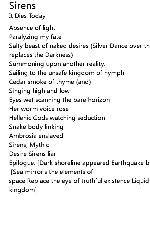 Epilogue: [Dark shoreline appeared Earthquake broke the harmony Liquidity of body and mind [Shipping with the beast of beauty] [Sea mirror's the elements of space Replace the eye of truthful existence Liquid living roots underwater kingdom]