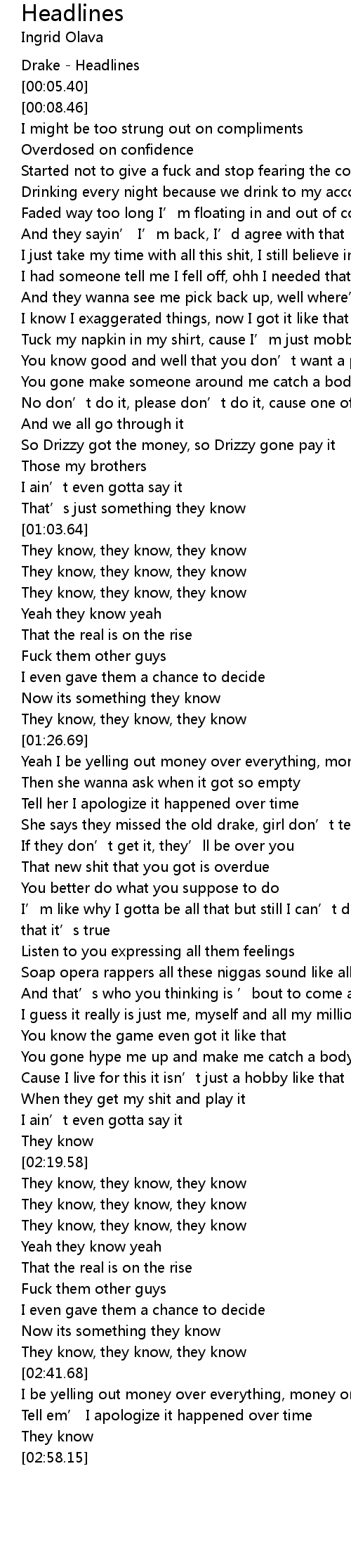 | [00:00.02] | Drake Headlines |