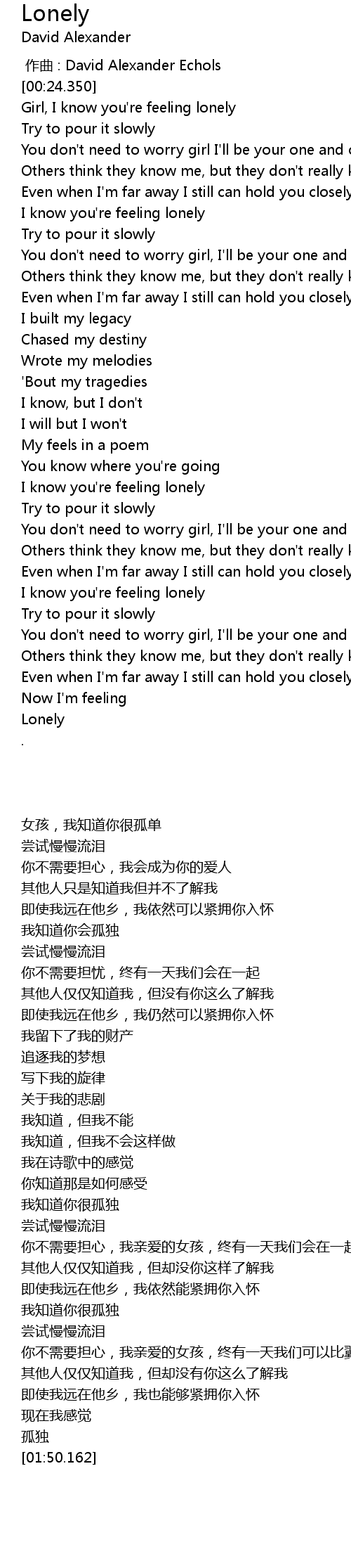 | [00:28.660] | Girl, I know you' re feeling lonely |