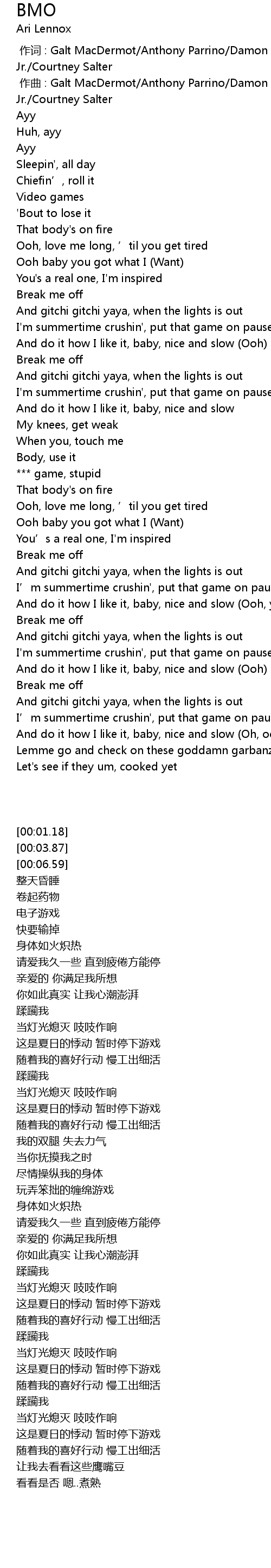 | [00:52.75] | I'm summertime crushin', put that game on pause |