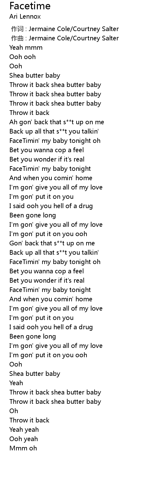 | [01:21.22] | FaceTimin' my baby tonight oh |