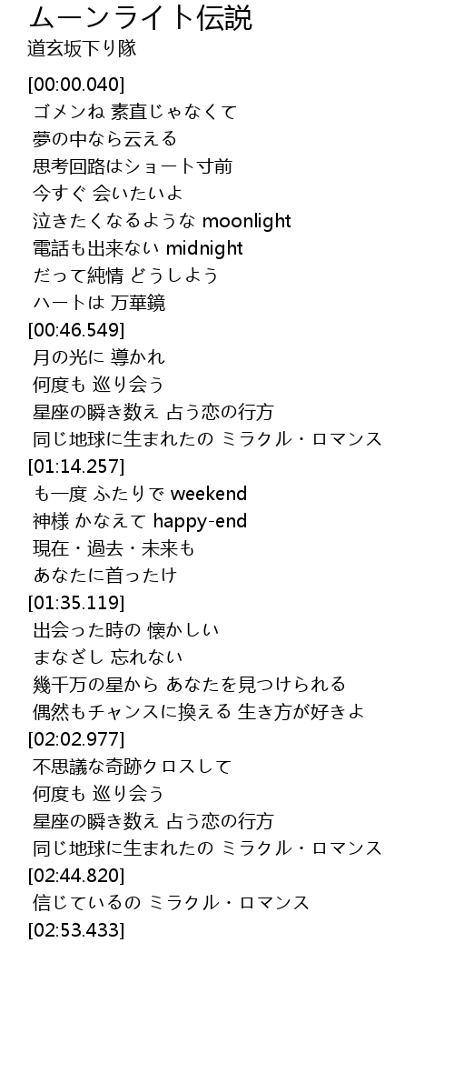 | [02:37.925] | 同じ地球に生まれたの ミラクル・ロマンス |