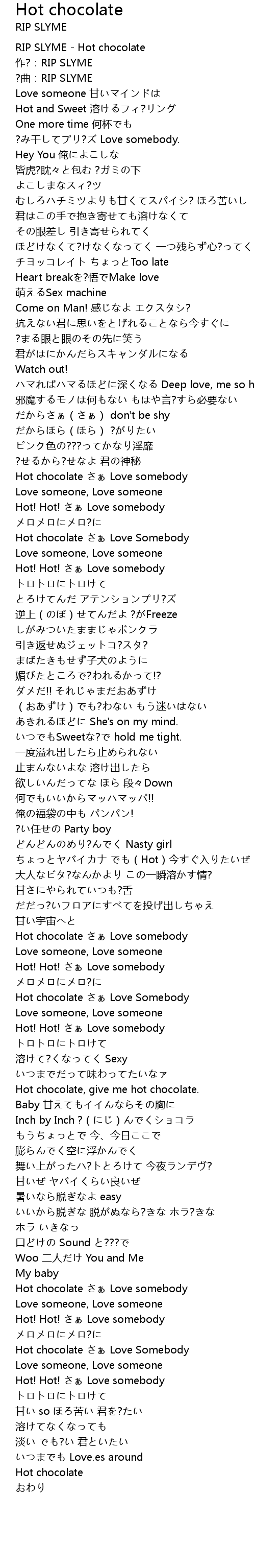 | [00:00.00] | RIP SLYME Hot chocolate |