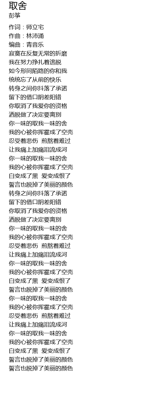 | [02:53.07] | 你一味的取我一味的舍 |