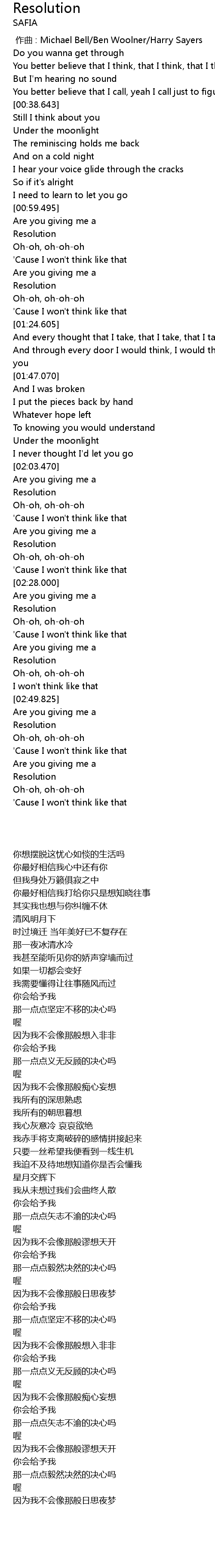 | 歌曲 | Resolution |