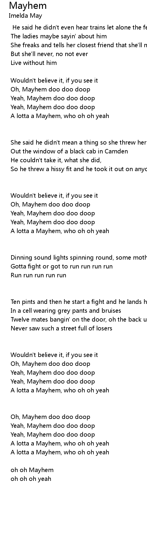 Yeah, Mayhem doo doo doop |