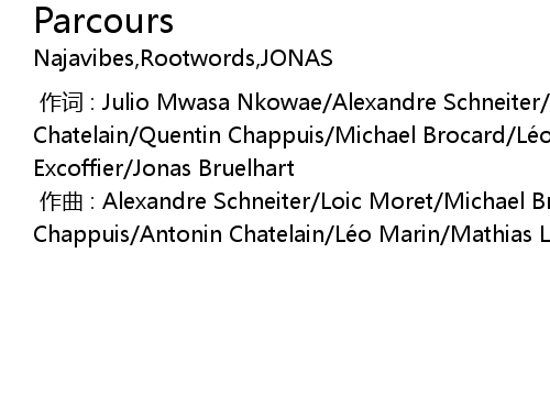 | [00:00.000] | 作词 : Julio Mwasa Nkowae/Alexandre Schneiter/Loic Moret/Antonin Chatelain/Quentin Chappuis/Michael Brocard/Léo Marin/Mathias Liengme/Solal Excoffier/Jonas Bruelhart |