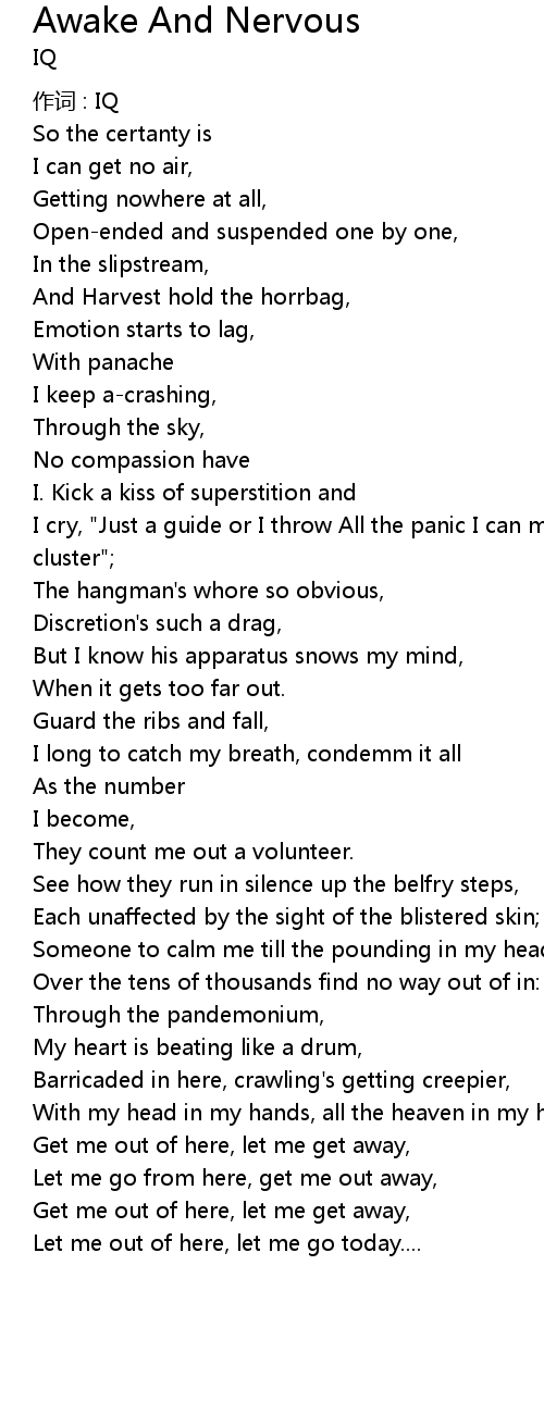 | I cry, " Just a guide or I throw All the panic I can muster, Threatening to the cluster" | |