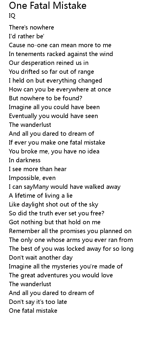 | If ever you make one fatal mistake | |