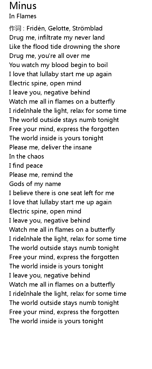| 作词 : Fridén, Gelotte, Strömblad | |