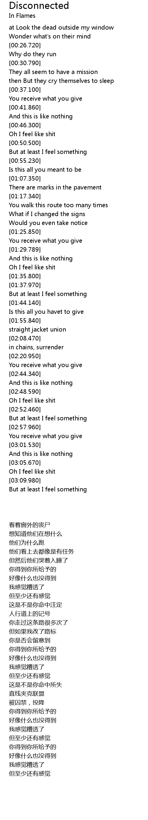 | [03:11.790] | But at least I feel something |