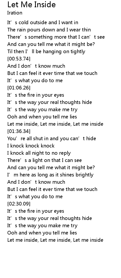 | [02:52.47] | Let me inside, Let me inside, Let me inside |