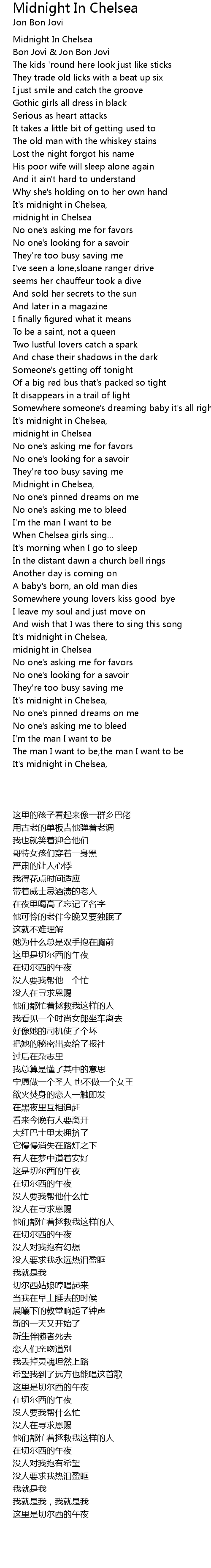 Midnight in Chelsea, |