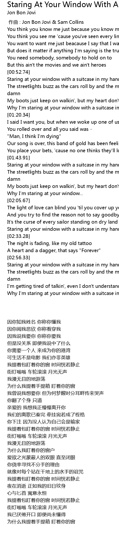 | [00:00.00] | zuo qu : Jon Bon Jovi Sam Collins |