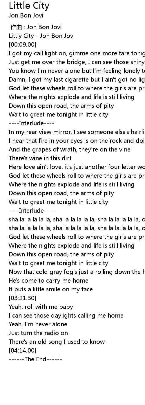 | [00:01.55] | Littly City - Jon Bon Jovi |