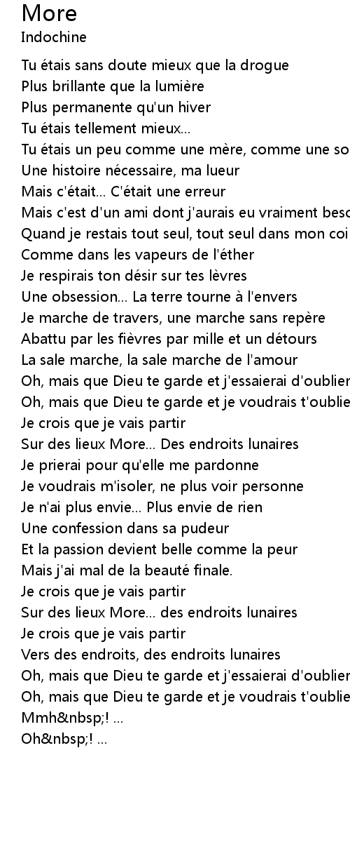 | Oh, mais que Dieu te garde et je voudrais t'oublier | |