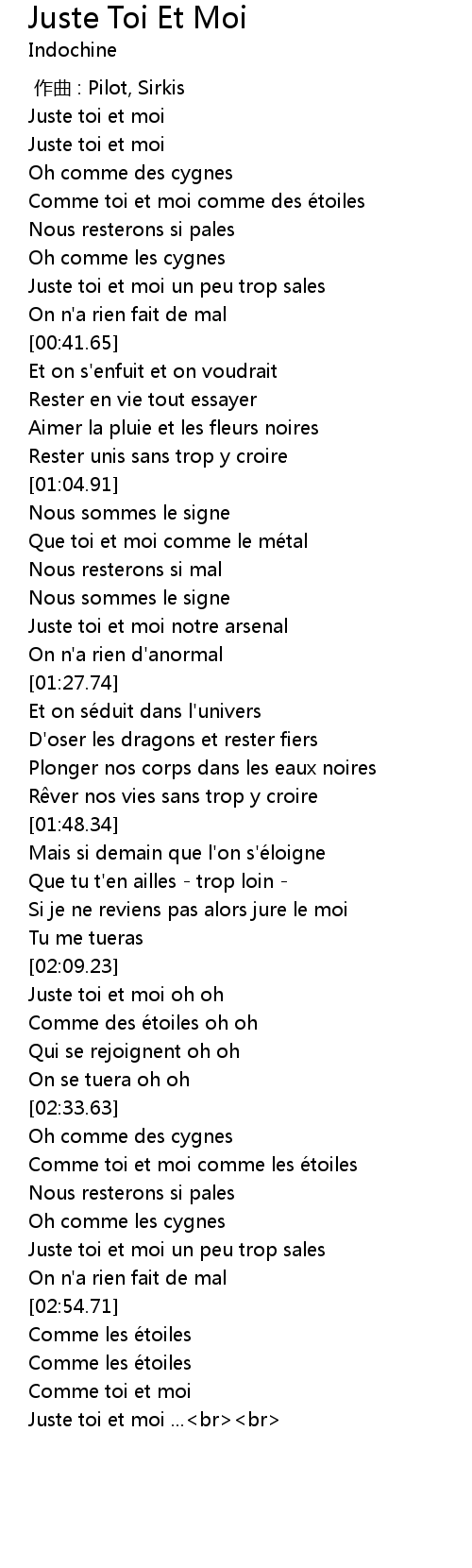 | [03:11.37] | Juste toi et moi ...<br><br> |