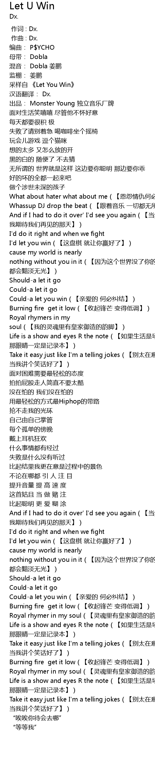 | [00:10.583] | 采样自 《Let You Win》 |