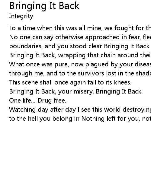 No one can say otherwise approached in fear, fled when we came near you knew the boundaries, and you stood clear Bringing It Back Fists of truth.