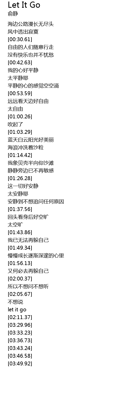 | [00:49.45] | 平静的心的感觉空空滴 |