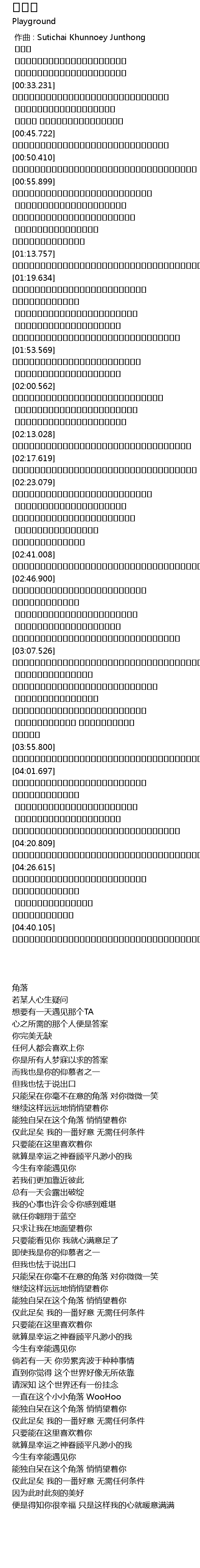 | [03:25.448] | 一直在这个小小角落 WooHoo |