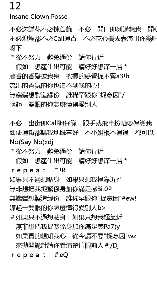| [03:02.12] | 如果真的想知我心 從今請不要"捉意因"wz |