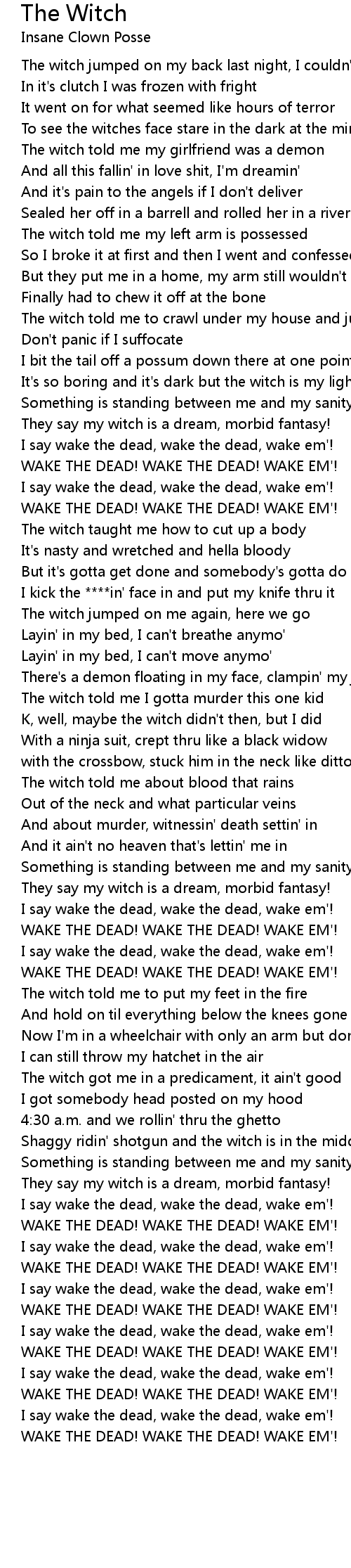 The witch told me I gotta murder this one kid |