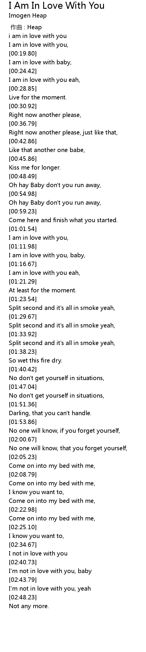 | [02:46.54] | I'm not in love with you, yeah |