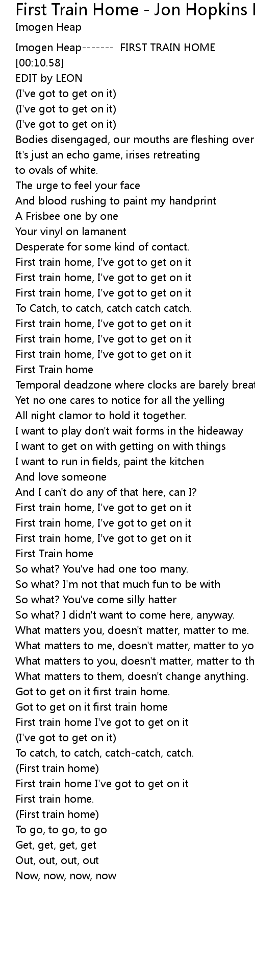 Imogen Heap------- FIRST TRAIN HOME |