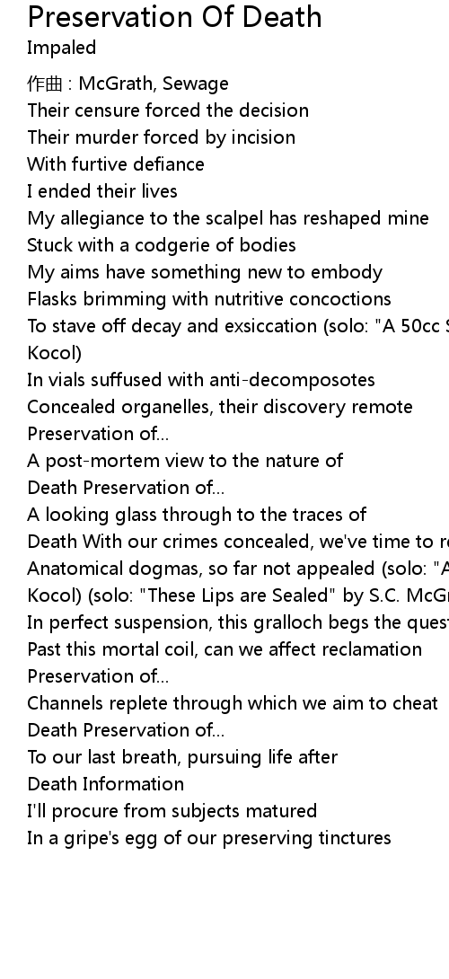 | To stave off decay and exsiccation (solo: "A 50cc Solution to the Problem" by J. Kocol) | |
