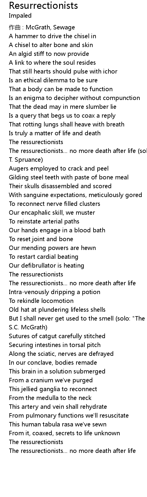 | 歌曲 | Resurrectionists |