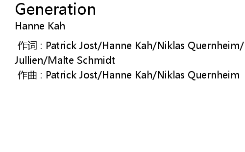 | [00:00.000] | 作词 : Patrick Jost/Hanne Kah/Niklas Quernheim/Marcus Jullien/Malte Schmidt |