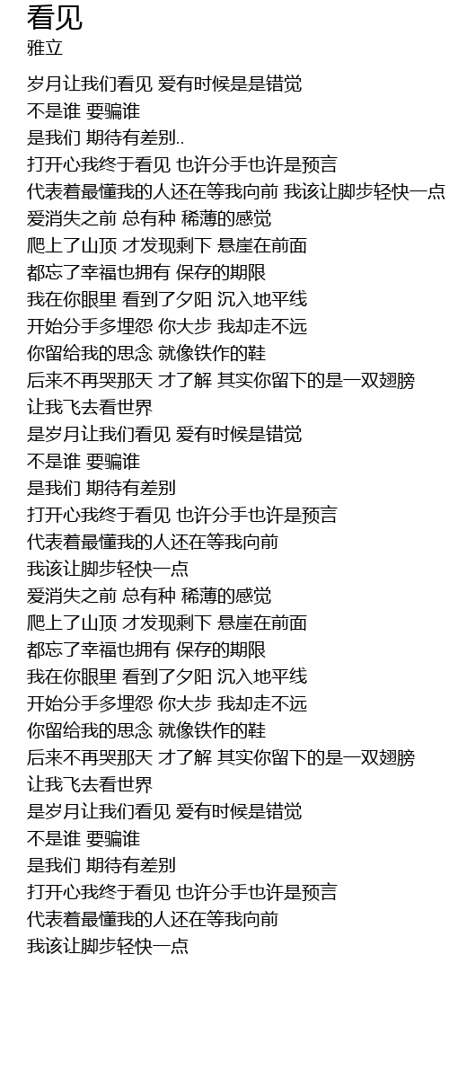 | [00:35.95] | dǎ kāi xīn wǒ zhōng yú kàn jiàn yě xǔ fēn shǒu yě xǔ shì yù yán |