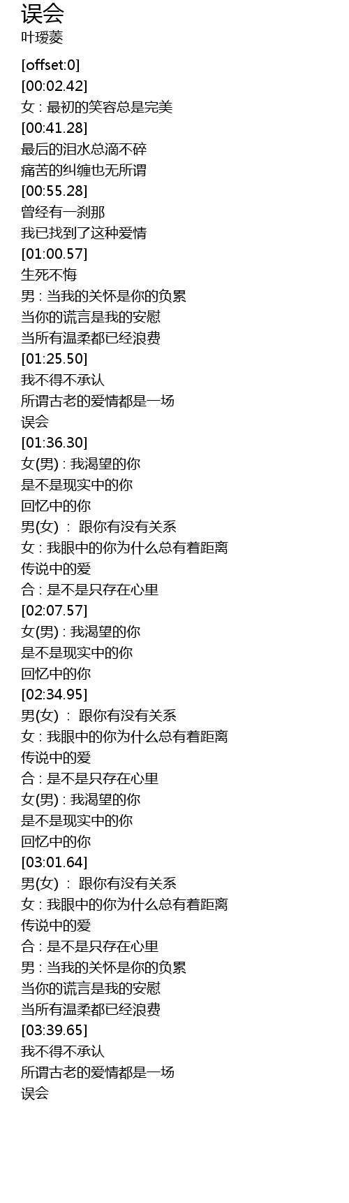 | [03:47.97] | 误会 |