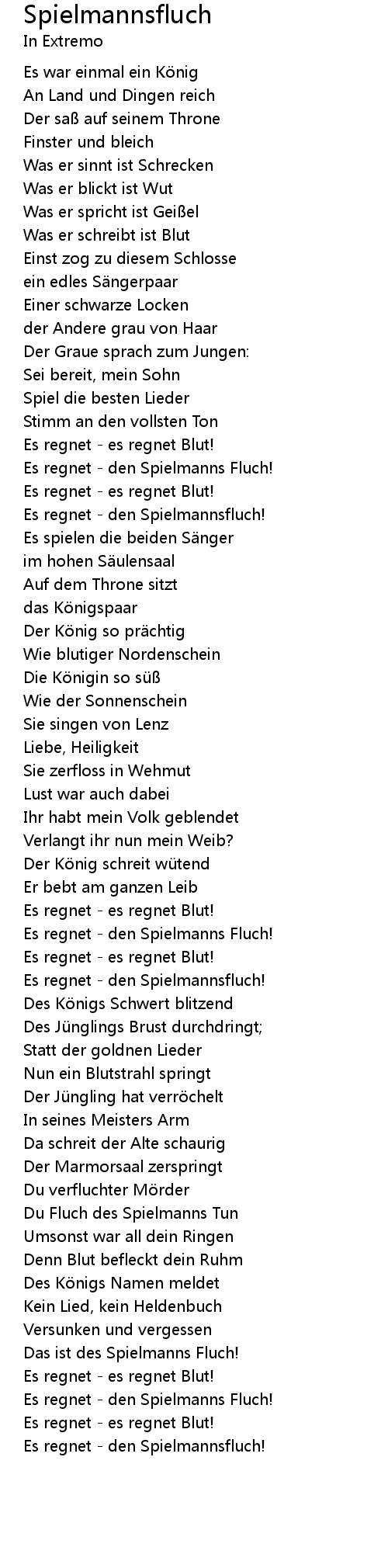 | Es regnet den Spielmanns Fluch! | |