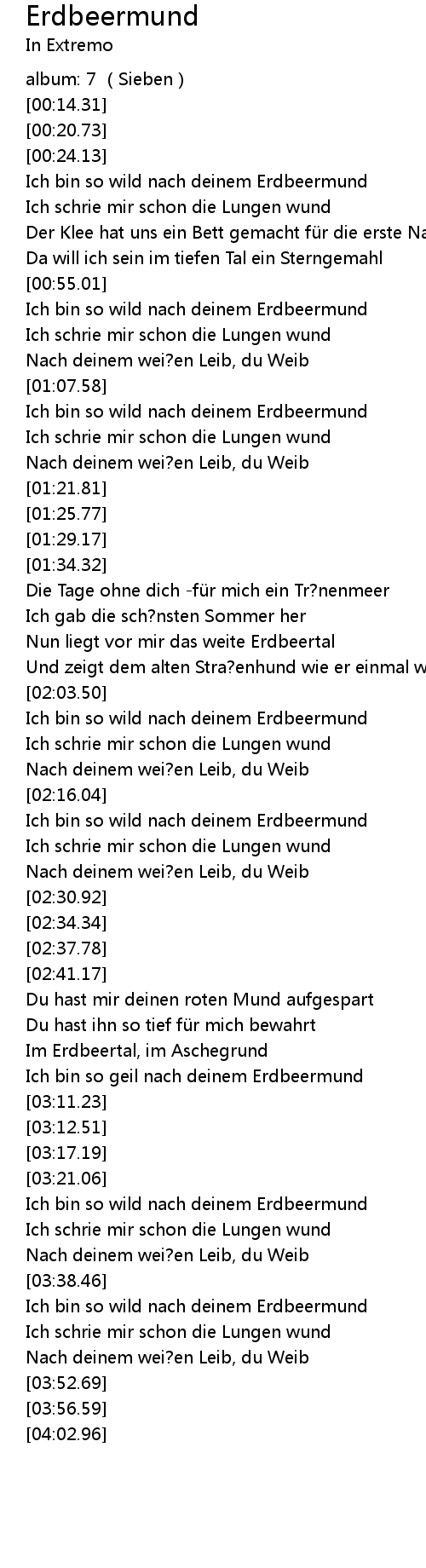 | [03:39.93] | Ich bin so wild nach deinem Erdbeermund |