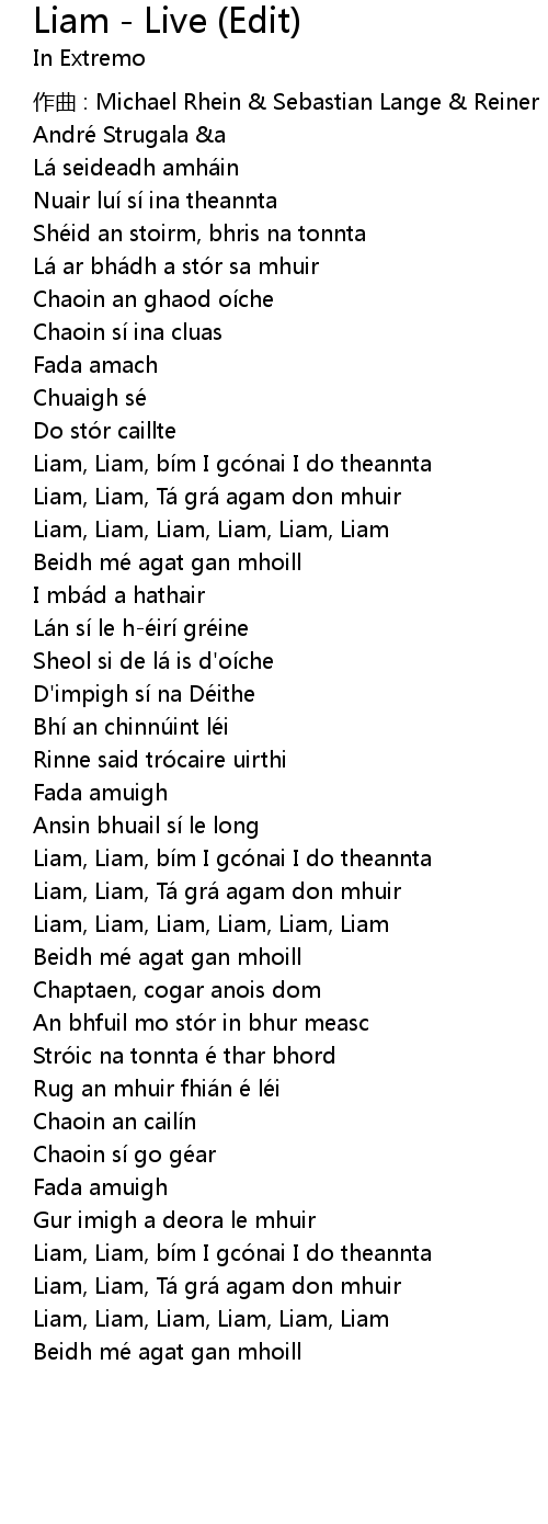 | Liam, Liam, bi m I gco nai I do theannta | |