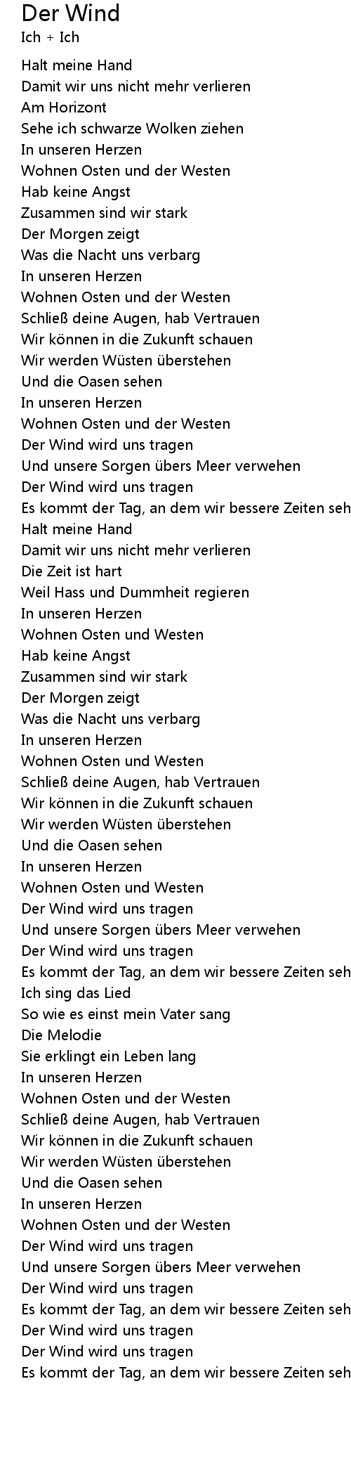 | Der Wind wird uns tragen | |