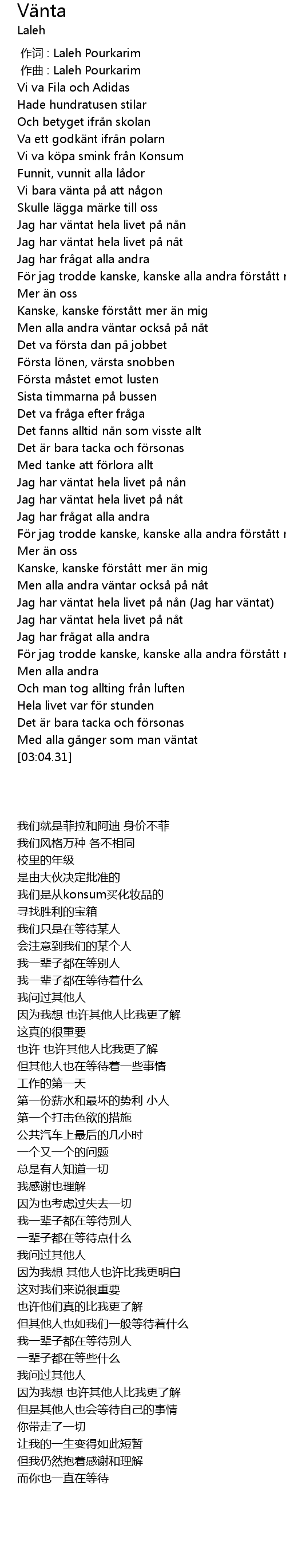 | [00:00.000] | 作词 : Laleh Pourkarim |