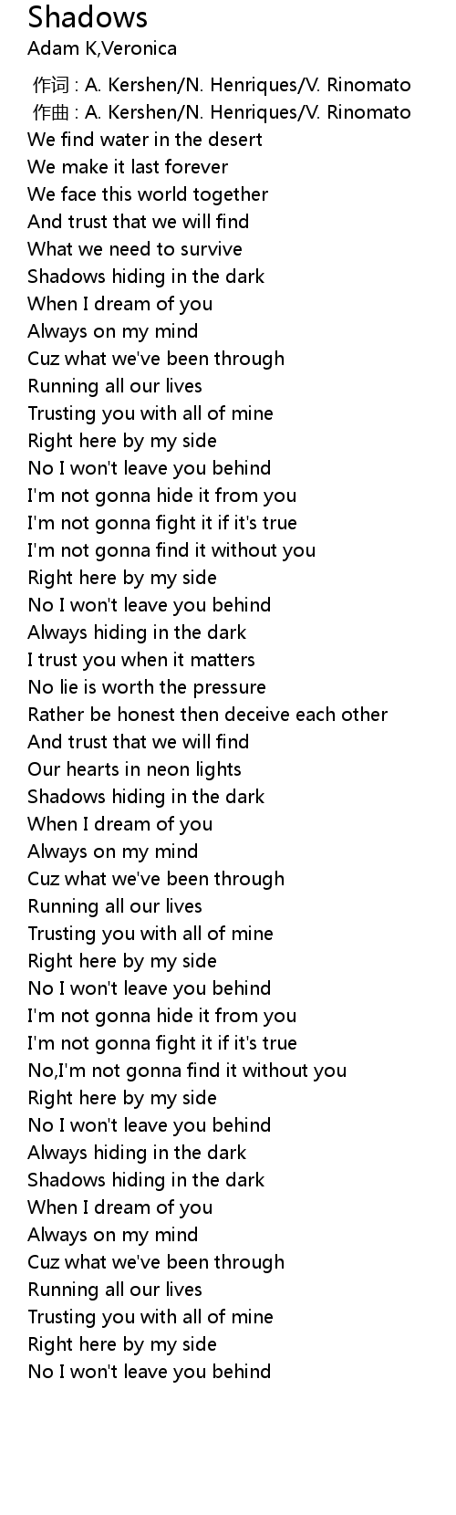 | [00:16.11] | Shadows hiding in the dark |