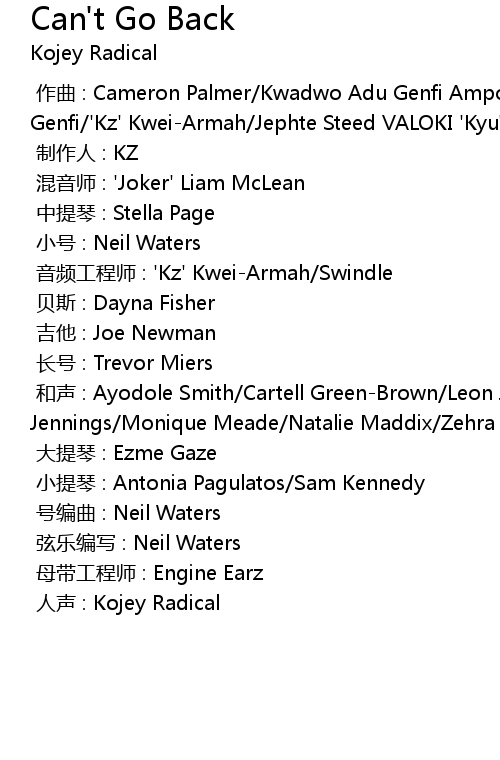 | 歌曲 | Can't Go Back |