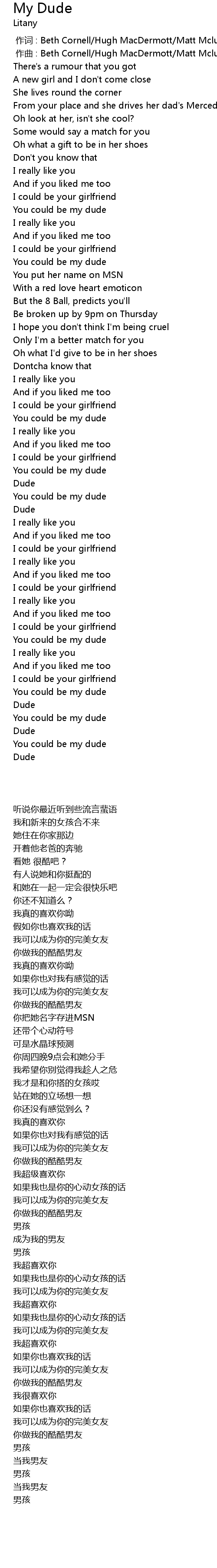 | [00:00.000] | 作词 : Beth Cornell/Hugh MacDermott/Matt Mcluckie |