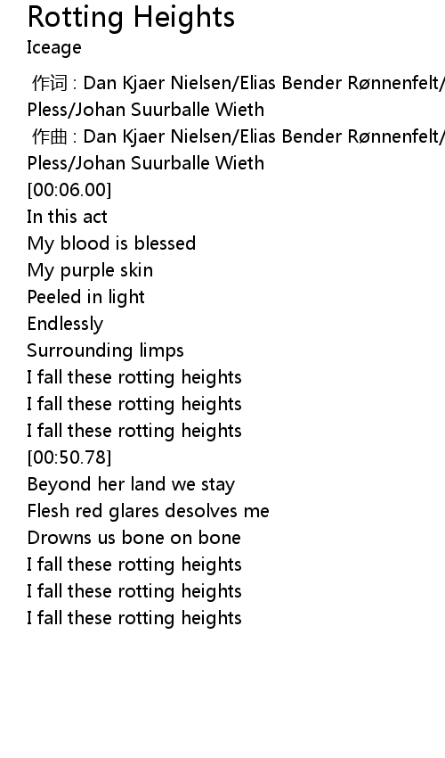 | [00:40.54] | I fall these rotting heights |