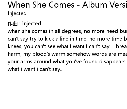 | 歌曲 | When She Comes - Album Version (Explicit) |