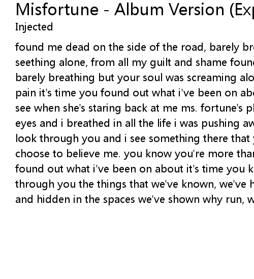 found me dead on the side of the road, barely breathing, but my soul was seething alone, from all my guilt and shame found you dead inside of your room, barely breathing but your soul was screaming alone, it's time to put away your pain it's time you found out what i've been on about well misfortune's plain to see when she's staring back at me ms. fortune's plain when i came to i opened my eyes and i breathed in all the life i was pushing away before i'd go insane i look through you and i see something there that you don't see, if only you'd choose to believe me. you know you're more than just your pain. it's time you found out what i've been on about it's time you knew, those eyes see right through you the things that we've known, we've held too much to keep it inside and hidden in the spaces we've shown why run, when there's nothing to hide? |